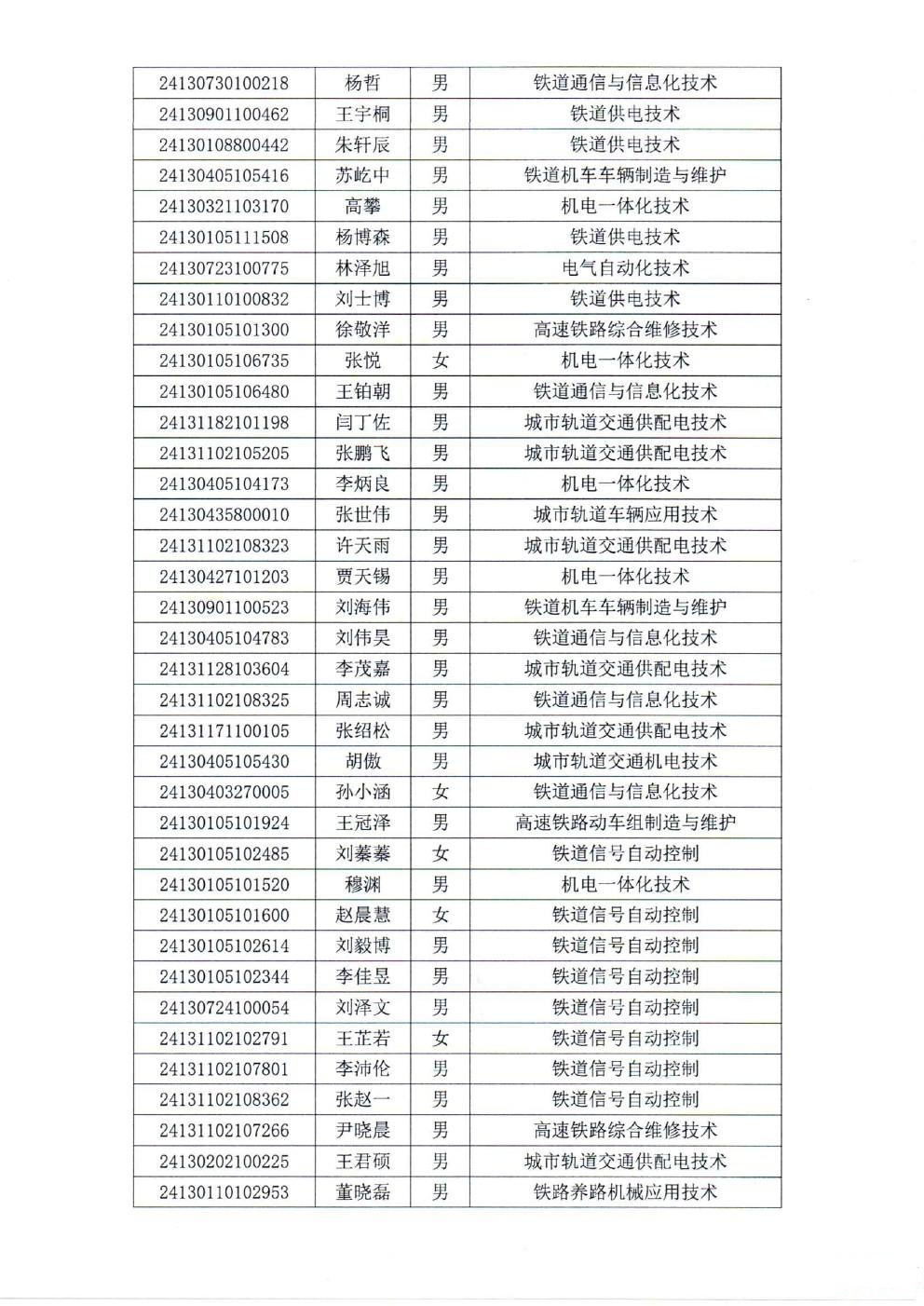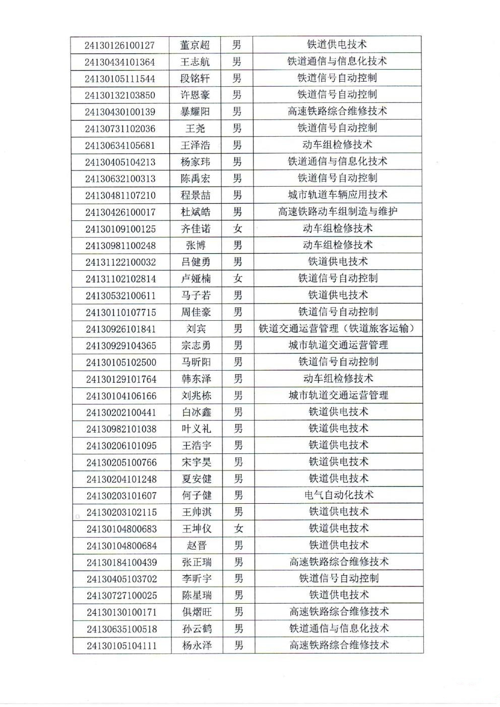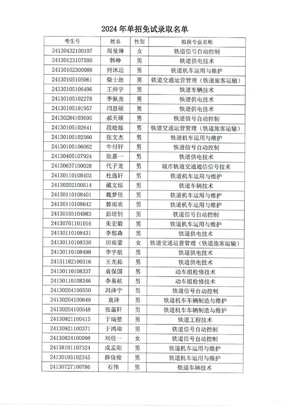 河北軌道運(yùn)輸職業(yè)技術(shù)學(xué)院2024年免試名單