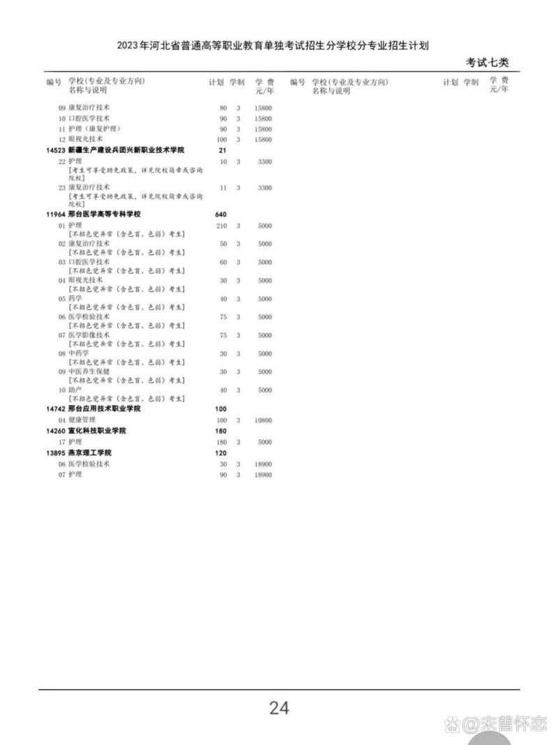 河北省2024年第七類單招招生計劃