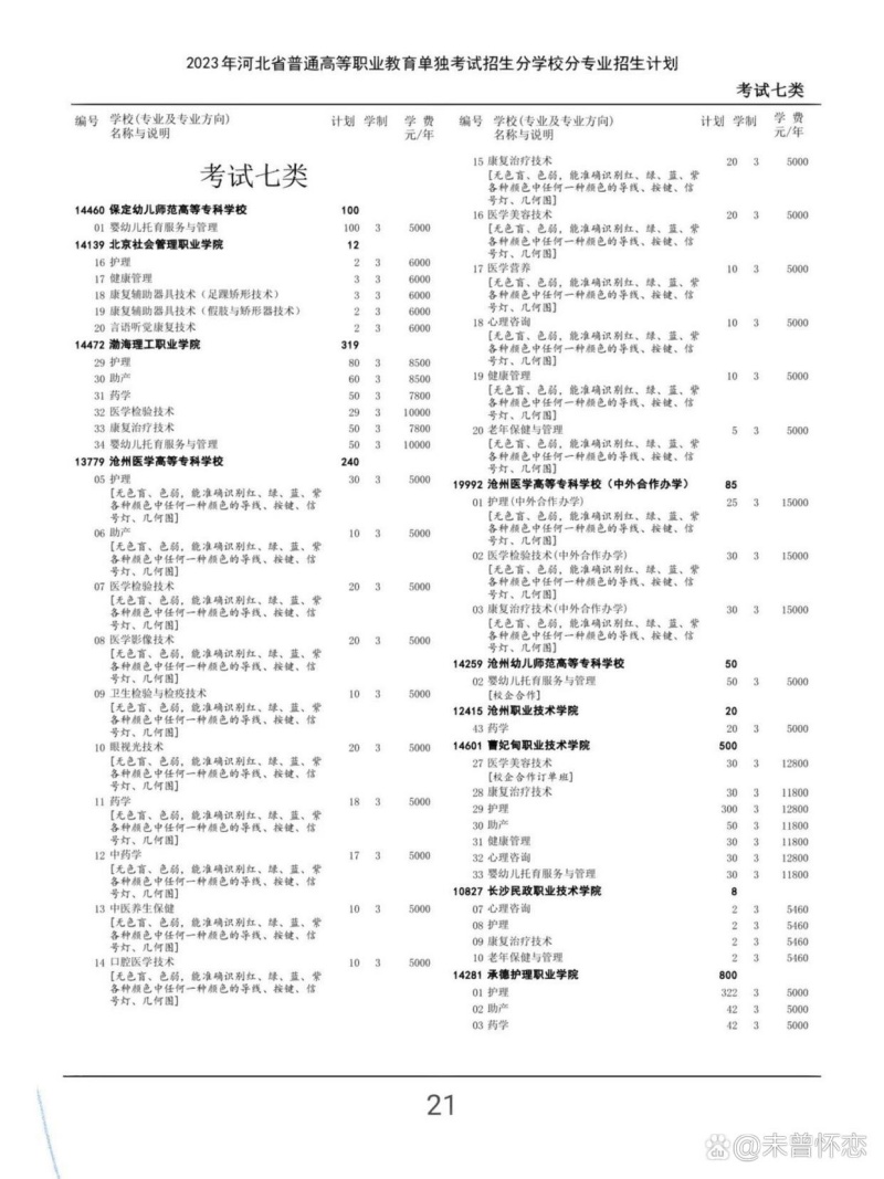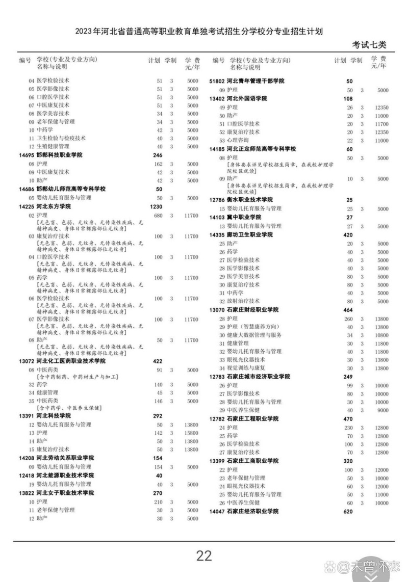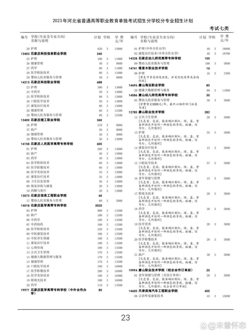 參考2023年河北單招七類招生計劃: