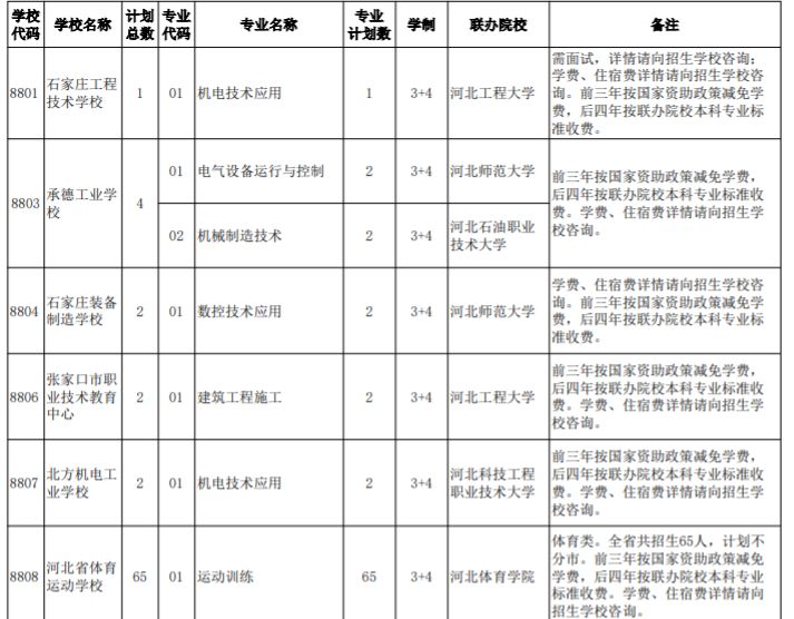 2024年河北省“3+4”本科招生計劃詳見正文。專業(yè)包括電氣設(shè)備運行與控制、機械制造技術(shù)、數(shù)控技術(shù)應(yīng)用等。