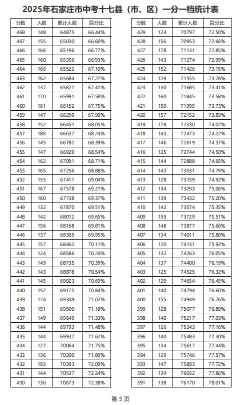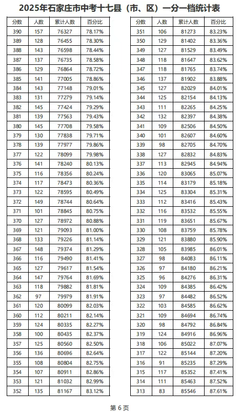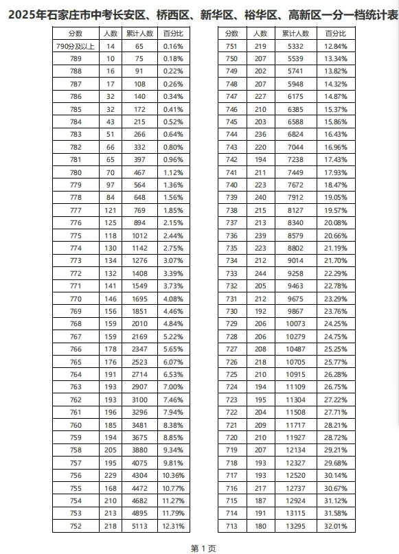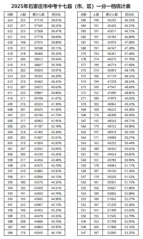 剛剛!2025年河北中考分?jǐn)?shù)線(xiàn)出爐,及石家莊中考一分一檔統(tǒng)計(jì)表